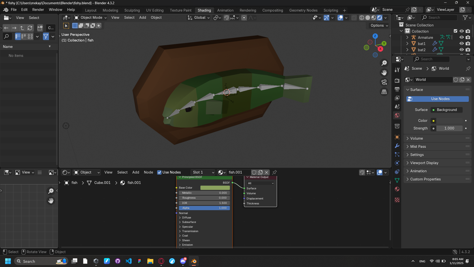 For this Month's Jam, I have been thinking a lot about those electric talking fish. The ones that sing songs and hang on the wall. No specific reason why, nor have I been fishing in months, but I felt it in my bones that I wanted to make a river-fish related model for this theme. The best way to connect that to the theme was through the humble sea bass's performer cousin, the Battery Powered Talking Fish. This is also my first 3D model without a tutorial since highschool, so that was pretty cool too! Enjoy!